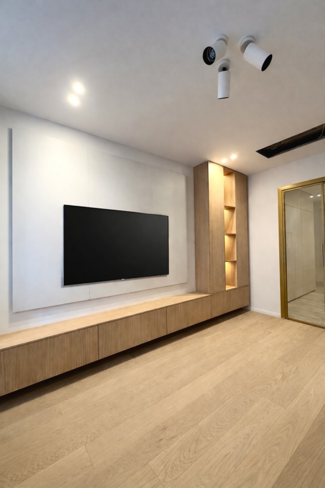 Реализовали проект с акцентом на чистые линии, скрытые решения и тёплую атмосферу уюта